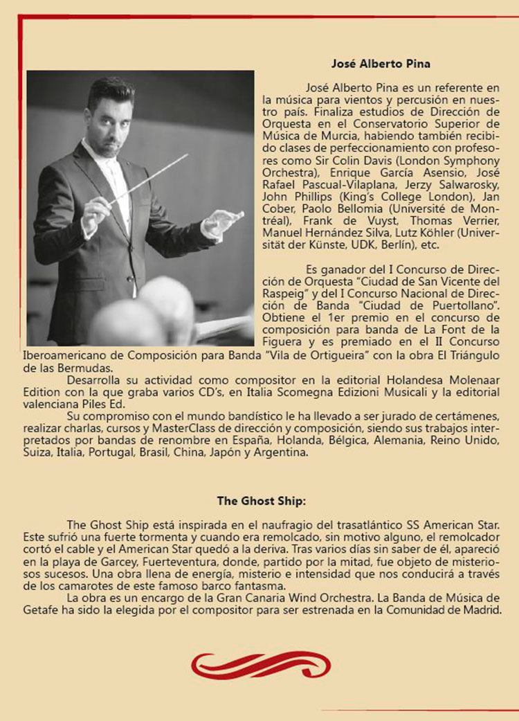 Ya en la segunda parte será el director invitado José Alberto Pina el que tome el relevo para estrenar su obra ‘The Ghost Ship’ y ‘La Leyenda de Maracaibo’ del propio compositor.
